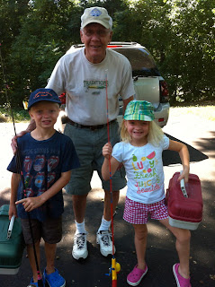 I was driving to pick up my son from a fishing camp at a county park. We passed this father and son going to fish. He had his canoe rigged up so that they could bike it to the river. It was so delicious watching them. The picture is grainy because it is a camera phone and then I had to crop my head and car mirror out of the picture and enlarge it to get this. I couldn't get any closer or I'm sure they would have thought I was a stalker.